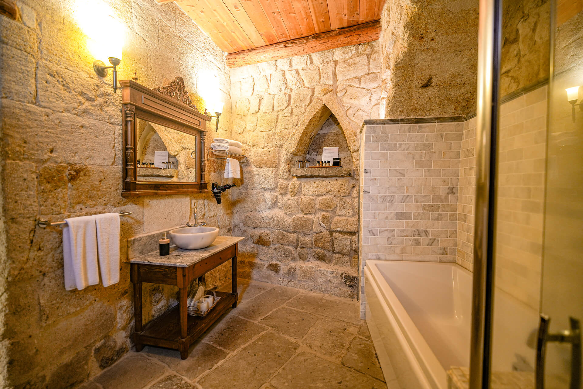 Kalitenin temel ilke olarak benimsendiği ve estetiğin ön planda olduğu, standartların üstünde hizmet veren otelimizin, orijinal görünümlerine sadık kalarak, Nevşehir'e özel kepez taşı ve tarihi işçilik tarzı ile restore edilen kayadan odalarında, misafirlerimize tarihi bir ortamda modern olanaklarla konaklama imkanı sunmaktayız.