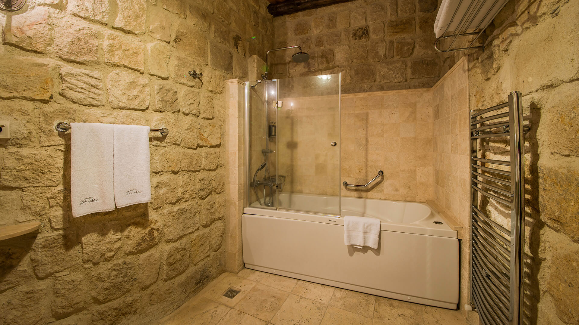 Kalitenin temel ilke olarak benimsendiği ve estetiğin ön planda olduğu, standartların üstünde hizmet veren otelimizin, orijinal görünümlerine sadık kalarak, Nevşehir'e özel kepez taşı ve tarihi işçilik tarzı ile restore edilen kayadan odalarında, misafirlerimize tarihi bir ortamda modern olanaklarla konaklama imkanı sunmaktayız.