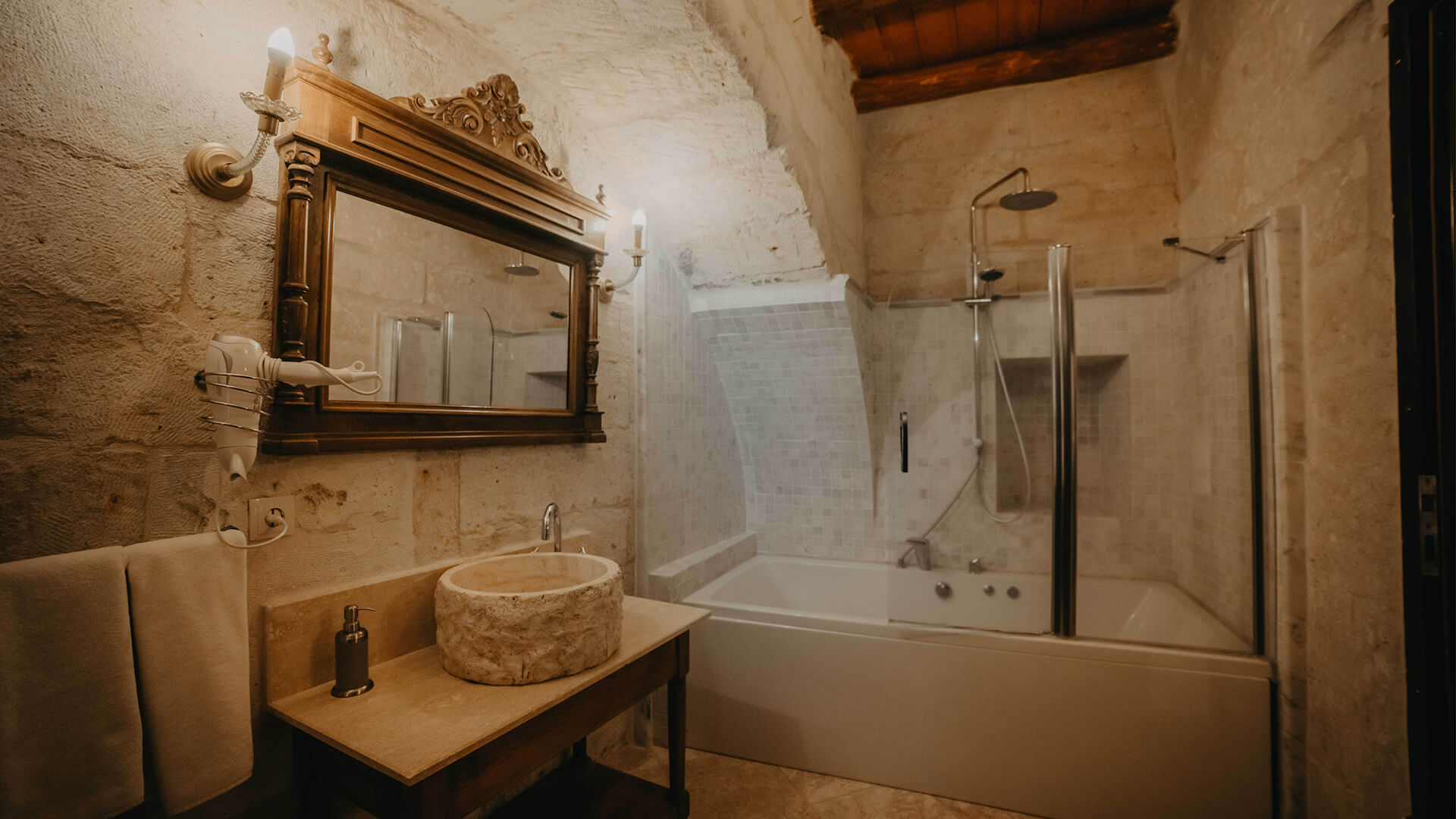 Kalitenin temel ilke olarak benimsendiği ve estetiğin ön planda olduğu, standartların üstünde hizmet veren otelimizin, orijinal görünümlerine sadık kalarak, Nevşehir'e özel kepez taşı ve tarihi işçilik tarzı ile restore edilen kayadan odalarında, misafirlerimize tarihi bir ortamda modern olanaklarla konaklama imkanı sunmaktayız.