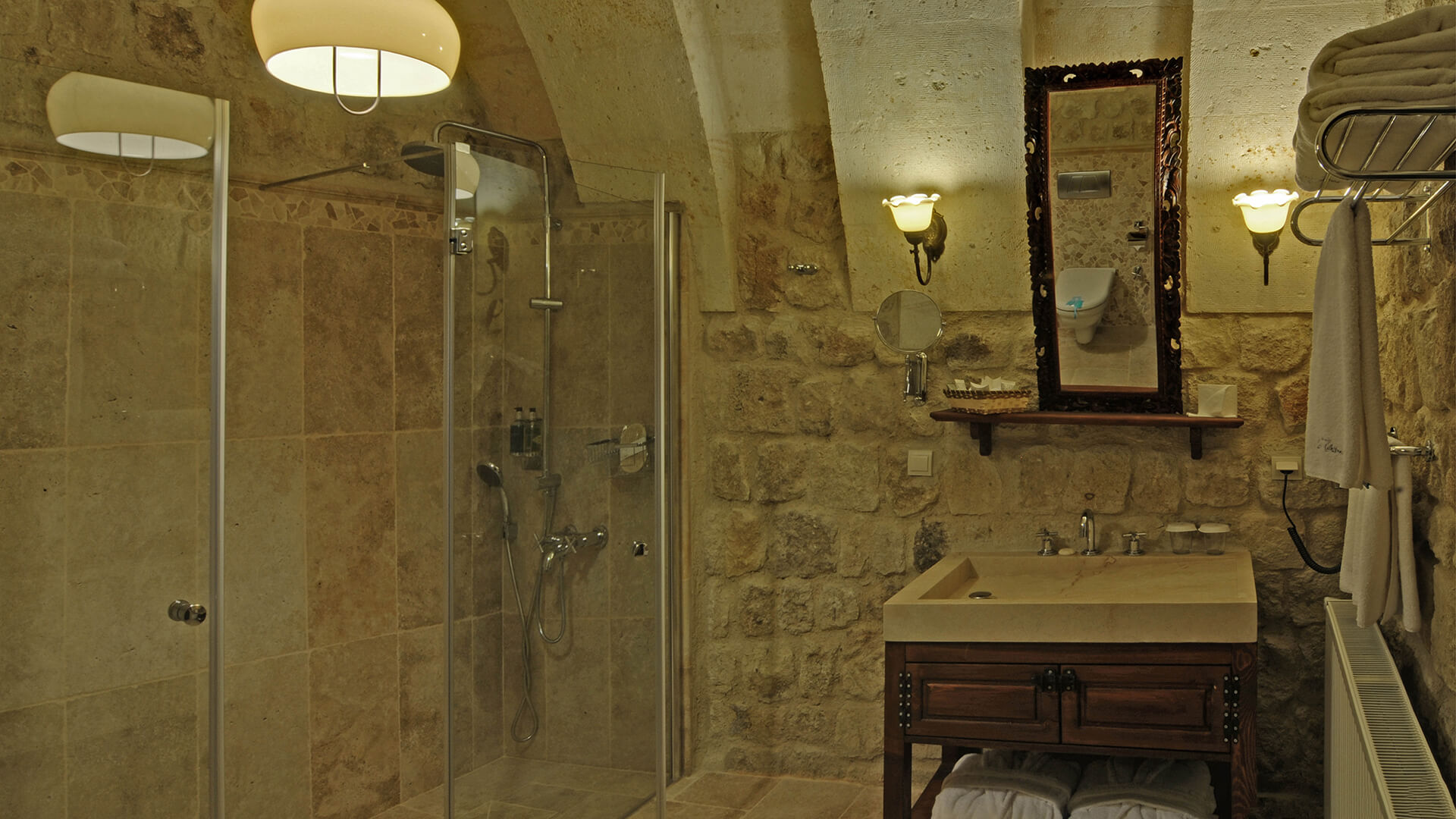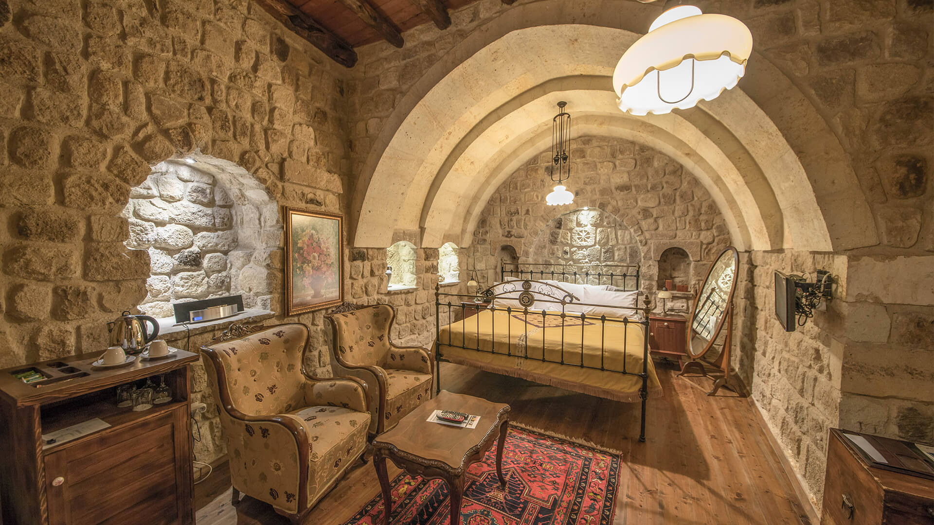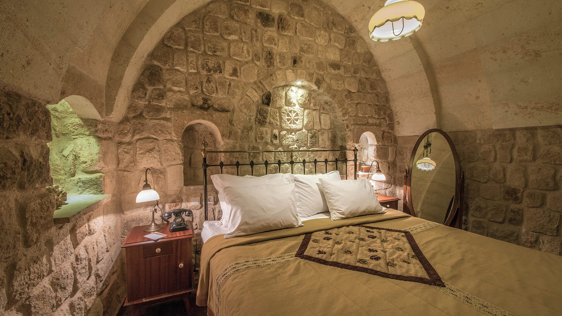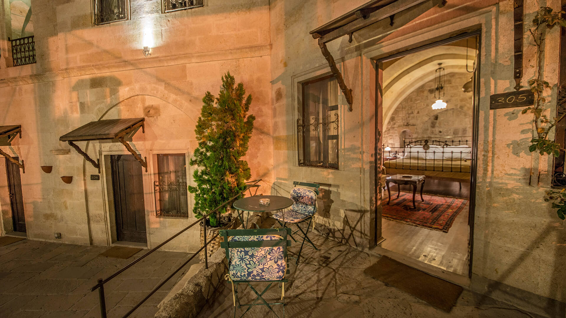 Kalitenin temel ilke olarak benimsendiği ve estetiğin ön planda olduğu, standartların üstünde hizmet veren otelimizin, orijinal görünümlerine sadık kalarak, Nevşehir'e özel kepez taşı ve tarihi işçilik tarzı ile restore edilen kayadan odalarında, misafirlerimize tarihi bir ortamda modern olanaklarla konaklama imkanı sunmaktayız.