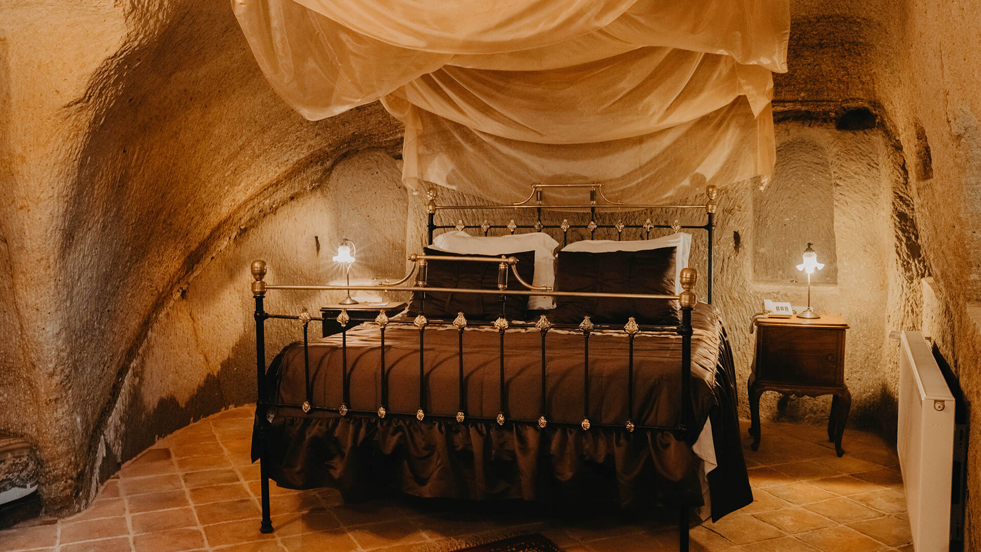 Kalitenin temel ilke olarak benimsendiği ve estetiğin ön planda olduğu, standartların üstünde hizmet veren otelimizin, orijinal görünümlerine sadık kalarak, Nevşehir'e özel kepez taşı ve tarihi işçilik tarzı ile restore edilen kayadan odalarında, misafirlerimize tarihi bir ortamda modern olanaklarla konaklama imkanı sunmaktayız.